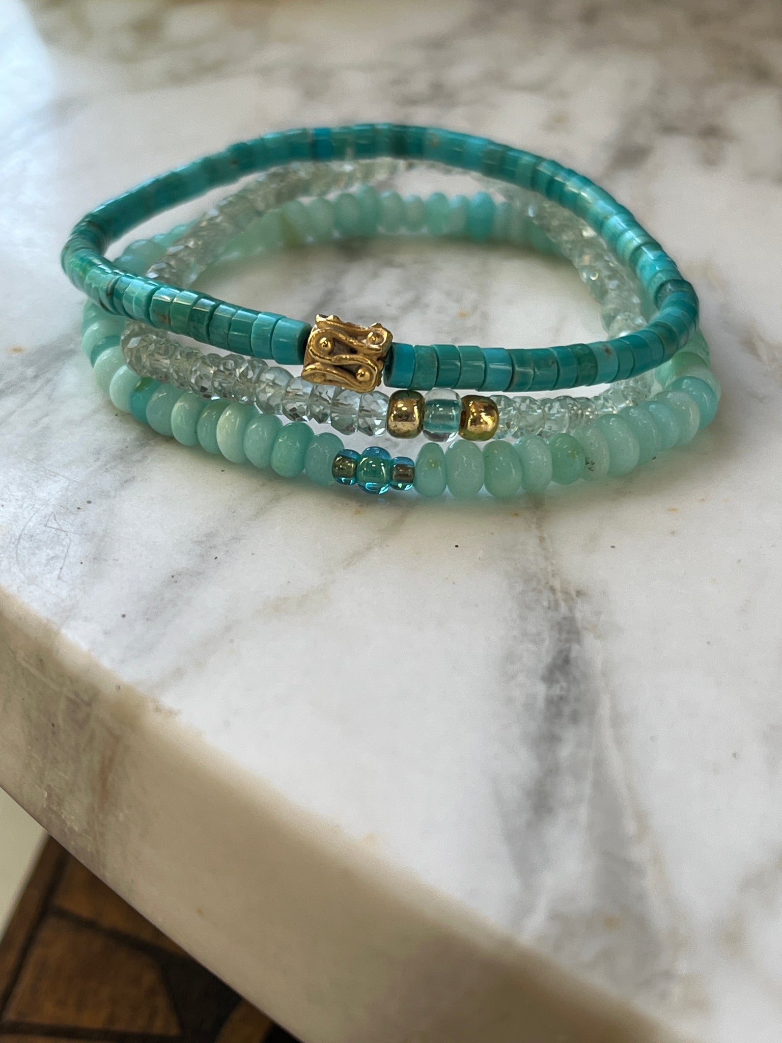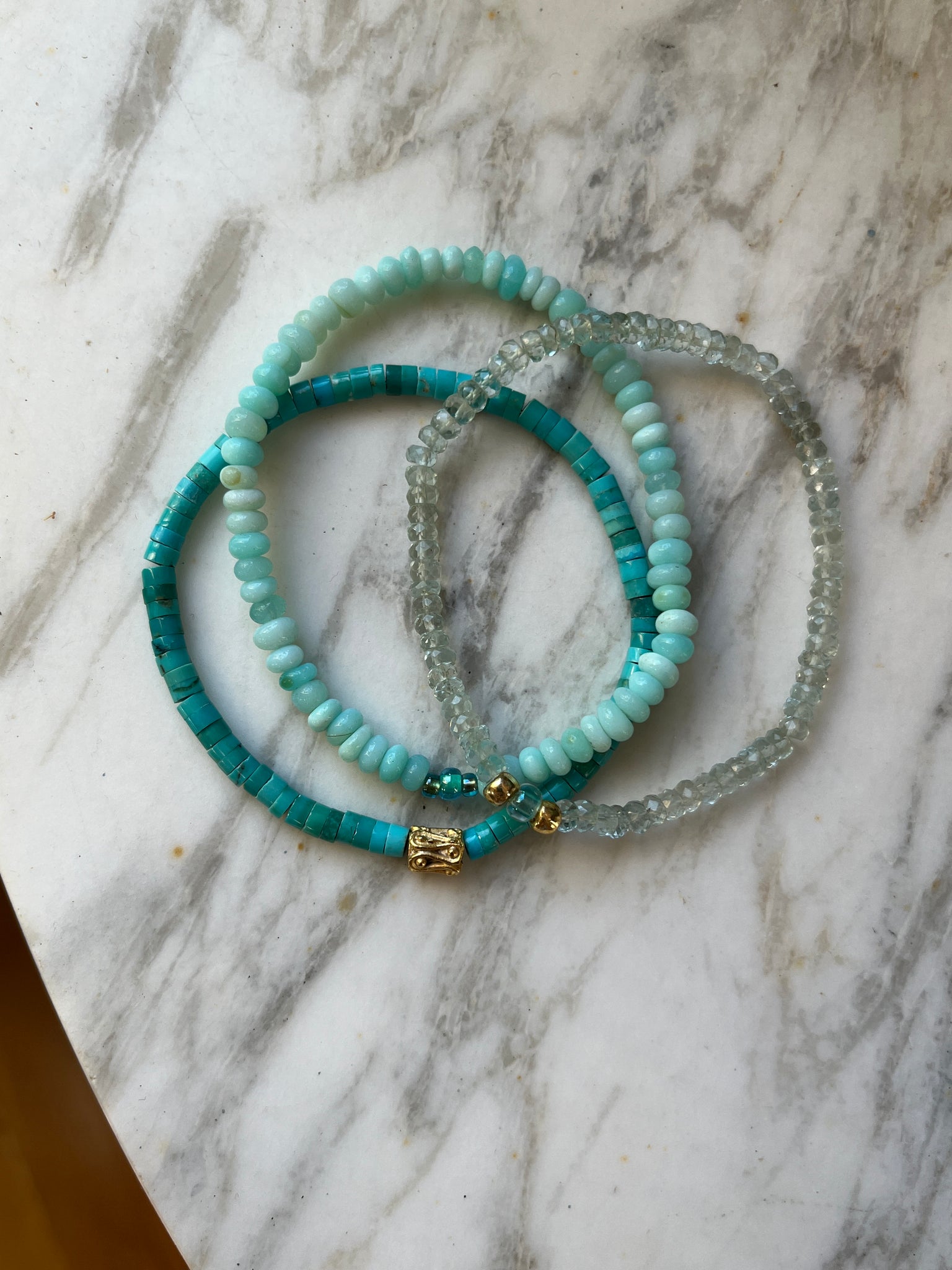 Pair with aquamarines and amazonite (shown) for a gorgeous stack.